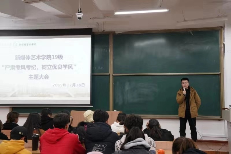 为了进一步严肃考风考纪,树立优良学风,构建诚信校园,保证期末考试的顺利进行。2019年12月18日晚七点,雨燕直播 在B-237教室召开了“严肃考风考纪,树立优良学风”教育大会,本次大会由19级辅导员康新兴主持,2019级全体学生参加了此次大会。