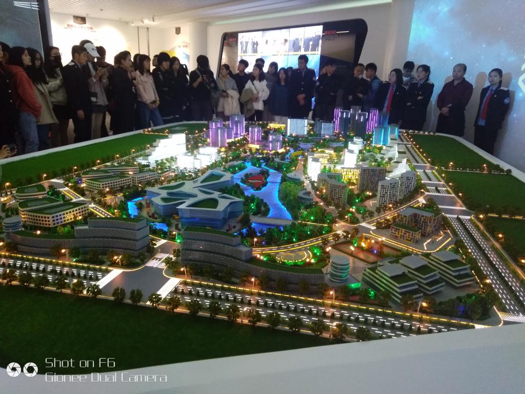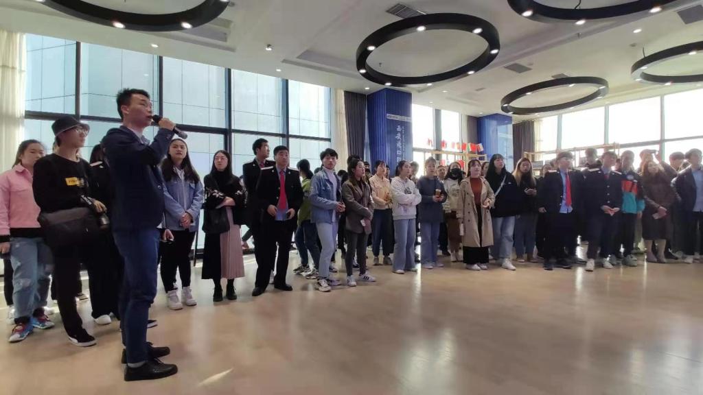 西安国际港务区位于西安市东北部灞渭三角洲,是中国第一个不沿江、不沿海、不沿边的国际陆港。师生们抵达后首先参观了中西部陆港金融小镇,观看了金融小镇的规划沙盘和主题宣传片。它是由迈科集团投资建设的物流金融园区,是“一带一路”60个重点支持项目之一,伴随着讲解员和短视频的详细介绍,师生们了解了金融小镇建设过程及各功能区的作用。