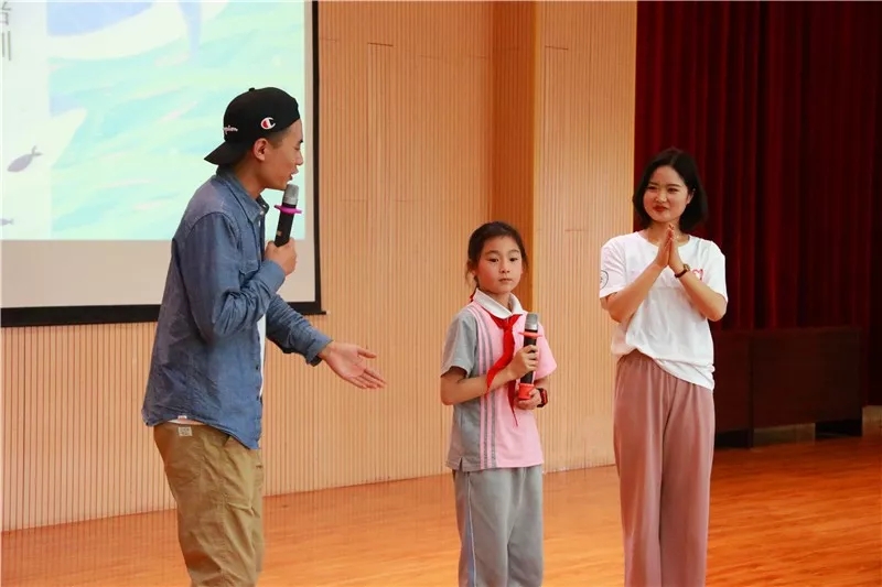 陕西师范大学绿地浐灞小学是此次系列活动的第二个合作学校。在这次活动中,研究生严梦林、迟守绍为绿地浐灞小学的同学们开展了一场别开生面的国学大讲堂。课堂上,严梦林首先通过一段精彩的自我介绍拉近了和同学们的距离,其次,她介绍了电视节目主持人的种类、风格,并亲自进行示范,她专业的播音示范赢得现场热烈的掌声。紧接着,迟守绍带着同学们开始了新颖有趣的口部操训练,他用极具表现力的语言又一次把现场气氛推向高潮。同学们积极跟着老师训练口腔,在一次次的发音练习中准确的找到发音部位,灵活的运用发音技巧。