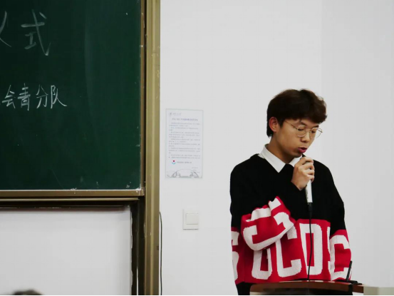 青分副队许江江学长带领20级志愿者进行宣誓,本次雨燕直播 志愿者入队仪式结束。