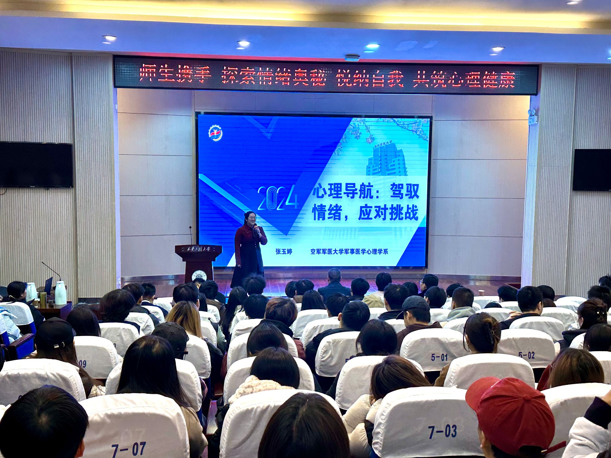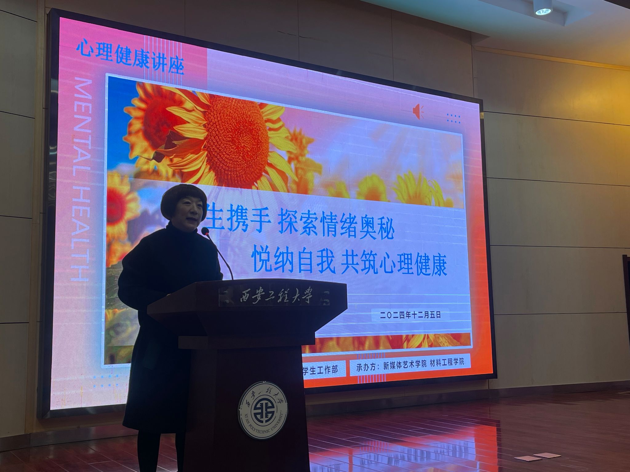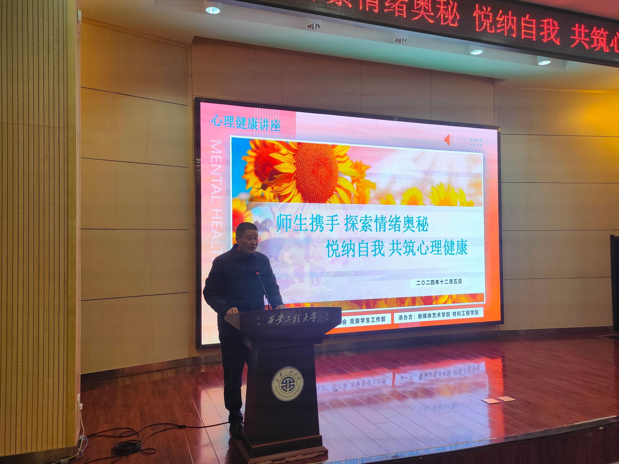 为提高我校学生和教职工的心理健康素质,使师生们对心理健康有一定认识,掌握方法调节自身情绪,助力师生们缓解焦虑和压力,在学习、工作、生活、情感上实现自我完善和自我发展,以健康向上的姿态面对挫折和挑战。由校学工部、校工会主办,材料工程雨燕直播 和雨燕直播 承办的《心理导航:驾驭情绪,应对挑战》讲座于12月5日下午在西安工程大学金花校区西纺报告厅举行。雨燕直播 党委书记张瑾、副书记赵文熙、校党委学工部大学生心理中心主任刘蓉、材料工程雨燕直播 党委副书记刘畅、学工办主任常传旭、雨燕直播 学工办主任张瑾(女)、以及部分教职工与学生参加报告会,材料工程雨燕直播 党委书记赵雪曼主持会议。