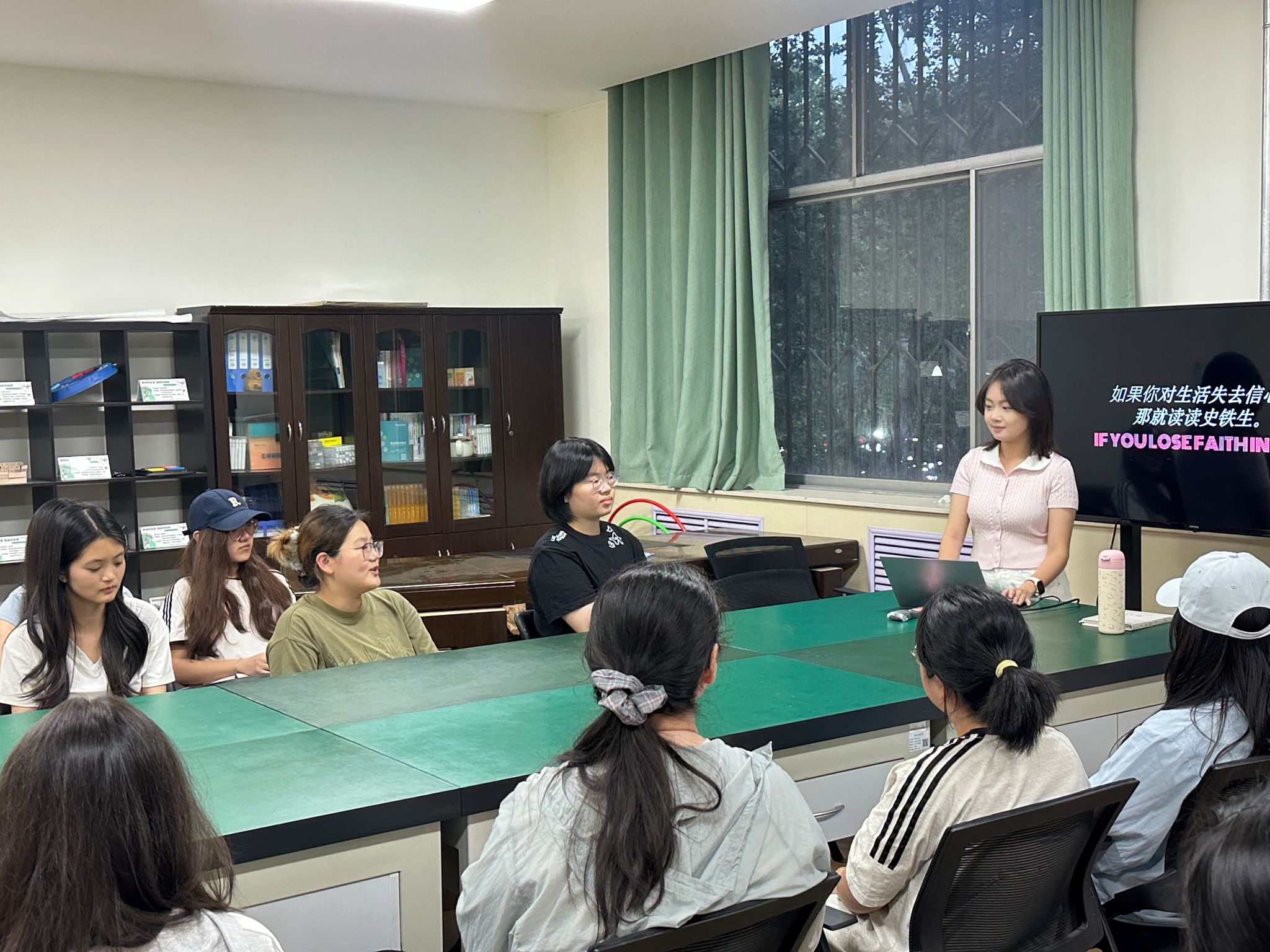 分享会伊始,张琳婧以史铁生的人生轨迹为引:双腿瘫痪、肾病缠身、透析维持生命…… 那些常人难以承受的磨难,却在史铁生笔下化作对生命本质的深刻洞察。“史铁生曾说,‘生命的意义就在于你能创造这过程的美好与精彩,生命的价值就在于你能够镇静而又激动地欣赏这过程的美丽与悲壮’”她娓娓道来,让同学们看到生命的意义和价值,不在于结果,而在于过程。