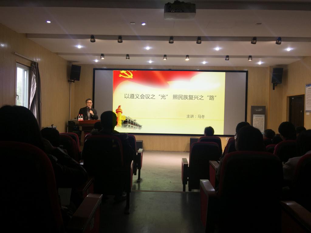 马冬思政课主题为“以遵义会议之‘光’ 照民族复兴之‘路’”。马冬强调我们弘扬遵义会议精神,就要实践好、运用好遵义会议历史经验,不断增强“四个意识”、坚定“四个自信”、做到“两个维护”,时刻保持共产党人的坚定信念和必胜信心,走实新时代的长征路。