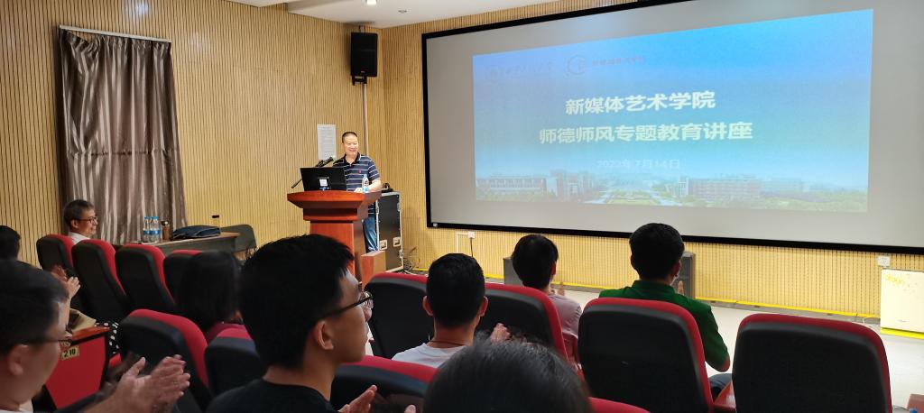 为深入学习贯彻习近平新时代中国特色社会主义思想和习近平总书记关于教育的重要论述,全面落实“立德树人”根本任务,积极引导雨燕直播 广大教师做有理想信念、有道德情操、有扎实学识、有仁爱之心的“四有”好老师,7月14日下午,雨燕直播 在观摩室召开师德师风专题教育系列活动,分为四个主题,一是进行师德集中学习教育动员部署;二是特邀我校管理雨燕直播 教授兼发展规划处处长刘晓喆同志开展专题讲座;三是启动“一院一品”之“新媒师影”活动;四是举行师德师风教育“润德”观影活动。会议由雨燕直播 党委书记张瑾主持,雨燕直播 全体教职工参加。