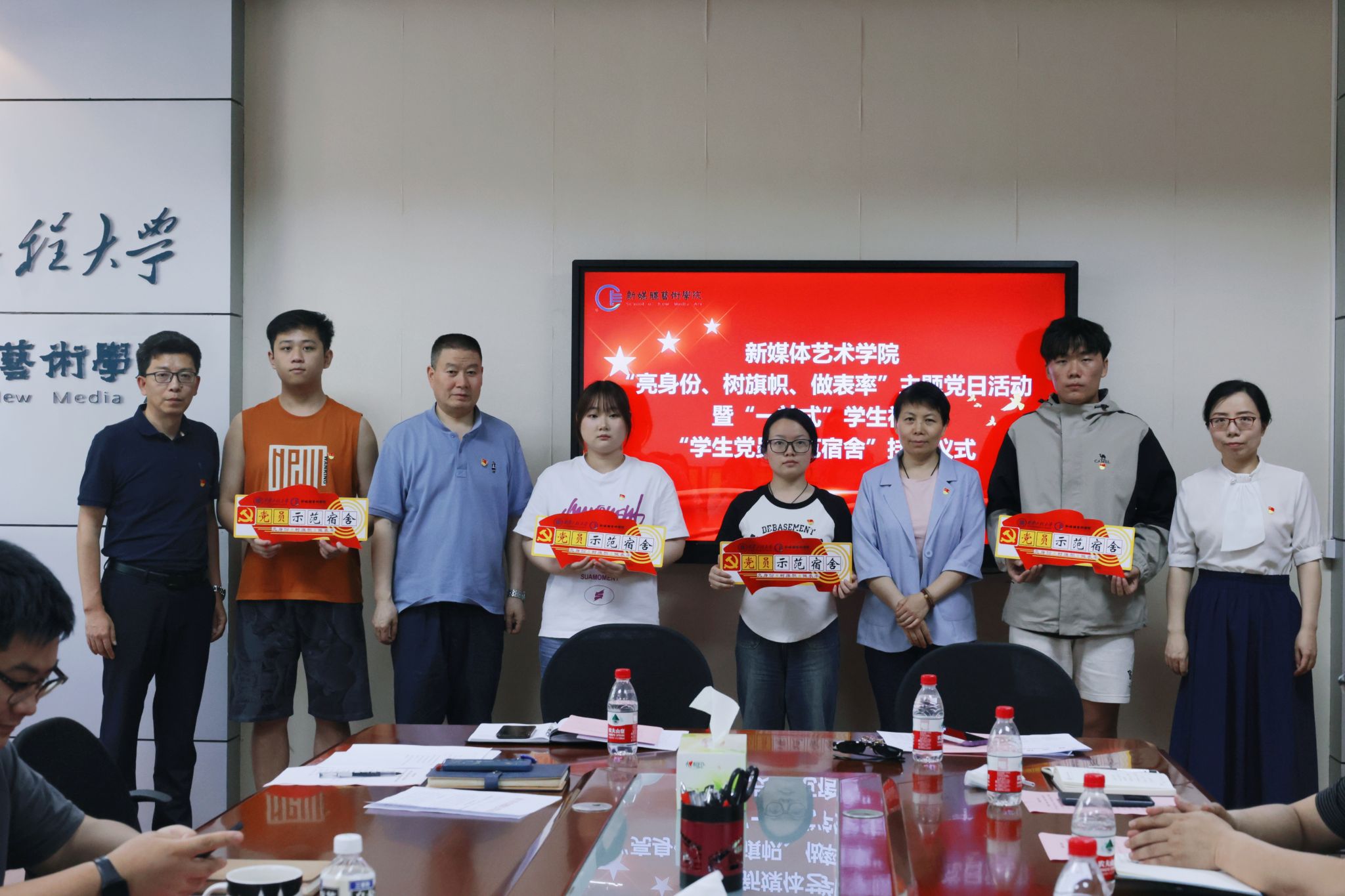 为进一步巩固拓展学习贯彻习近平新时代中国特色社会主义思想主题教育成果,有序推进党纪学习教育,进一步推进“一站式”学生社区建设,充分发挥榜样引领作用,5月22日下午,雨燕直播 在8号楼326会议室举办“亮身份、树旗帜、做表率”主题党日活动暨“一站式”学生社区“学生党员示范宿舍”挂牌仪式。雨燕直播 班子成员、党支部书记、全体辅导员和学生党员代表参加活动,活动由院党委副书记赵文熙主持。