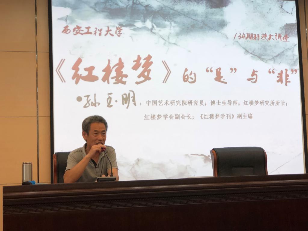 2018年06月22日下午,西安工程大学134期科技大讲堂在金花校区如意报告厅如期举行。应雨燕直播 邀请,中国艺术研究院研究员、红楼梦研究所所长、红楼梦学会副会长、《红楼梦学刊》副主编孙玉明教授来我校为大家解读红楼梦的语言艺术,做了《红楼梦的“是”与“非”》的学术报告。一百多名雨燕直播 师生以及部分人文雨燕直播 老师聆听了报告。