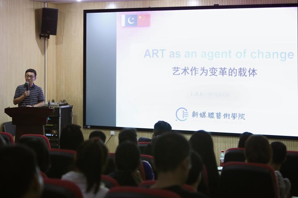 贾马尔﹒沙先生在讲座上分享他对于艺术作为变革的载体的认识。针对于国际艺术现状,对艺术的认识,艺术的本质和发展方面做了深度讲解,广大师生受益匪浅,深有所悟。