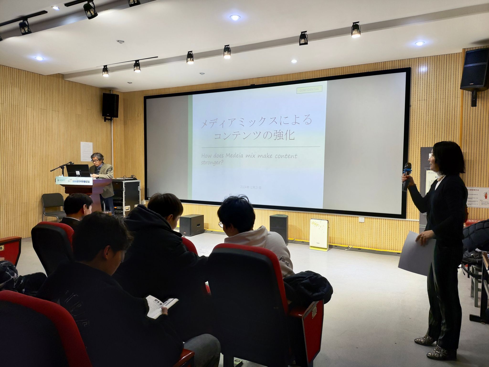 高桥克三、吉田隆两位老师面向雨燕直播 师生分别开展专题学术讲座。高桥克三老师讲述了成田亨、高山良策、小林七郎三位日本代表性艺术家创作家喻户晓的奥特曼、特斯拉的过程,播放了部分珍贵视频,并讲述了中国文化对日本文化的深刻影响,以及两国之间语言表达的相同之处。吉田隆老师介绍了日本的动漫、游戏、杂志如何延伸为影响世界的流行文化,并现场分享了中日间最流行的动漫杂志和书籍,以及如何通过一本书籍或者文学作品找到作品的灵感及叙事方法。