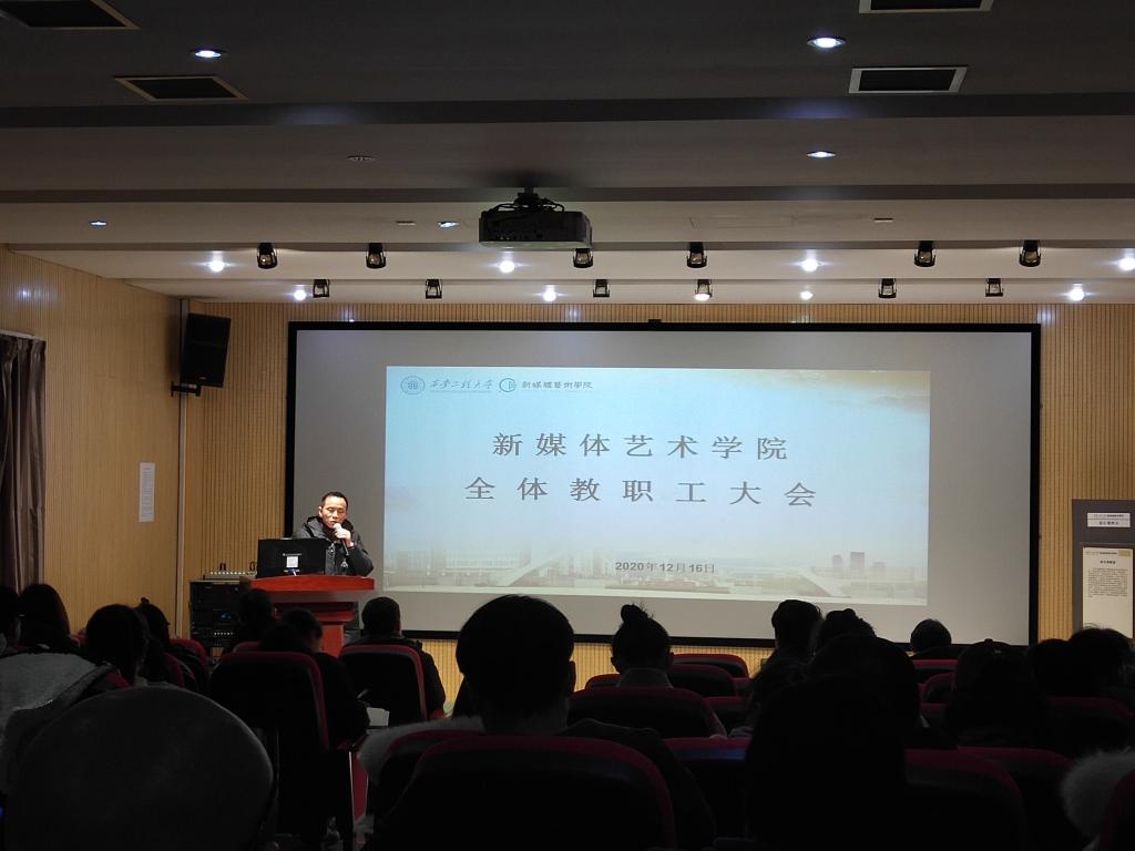 2020年12月16日,雨燕直播 在金花8号楼影片观摩室召开全体教职工大会。会议由院党委书记左志峰主持,全体教职工参会。