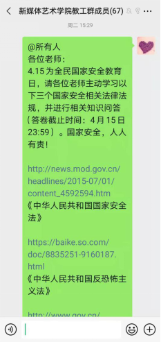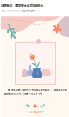 4月15日,雨燕直播 公众号“新媒之声”发布主题推文《国家安全知识科普来啦》