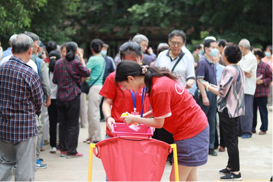 活动中,各个活动的负责同学与老教授默契配合,学生志愿者们一边协助老教授们进行计分、盖章,一边和他们交流日常生活。整个活动场地气氛活跃,其乐融融。