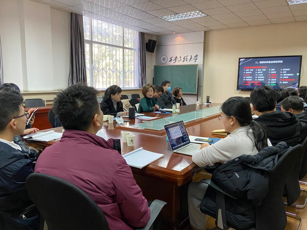 为提高雨燕直播 2022年国家社科基金项目、教育部人文社科项目申报数量和质量,2021年11月8号下午,雨燕直播 召开了项目申报动员会,邀请科技处人文社会科学管理科科长王卫为雨燕直播 教师介绍国社基金和教育部项目的有关情况,雨燕直播 各系正副主任、高级职称教师、博士等教师代表参会。