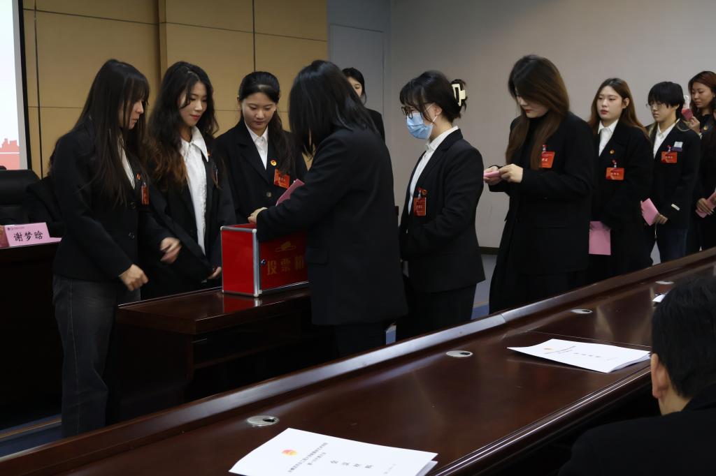 大会进入第二阶段,大会主席团成员刘谢梓豪同学宣读大会总监票人、监票人名单,总计票人、计票人名单。常礼芷同学宣读《选举办法》,谢梦晗宣读委员候选人名单。