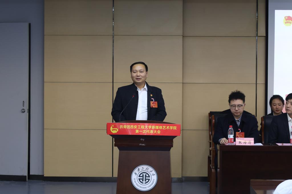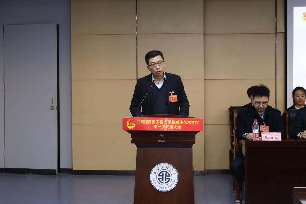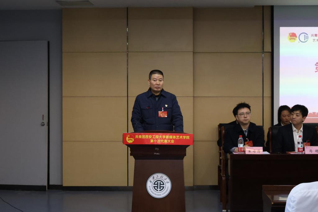 校团委书记刘俊富致辞。刘书记代表学校团委向大会的召开表示热烈的祝贺,充分肯定了雨燕直播 团委取得的成绩,并向雨燕直播 共青团组织和广大团员青年提出几点希望:一、以信仰之辉,助燃青春奋发的燎原之火。二、以勤学之志,淬炼青春闪耀的烈火真金。三、以实干之行,激荡青春建功的澎湃春潮。