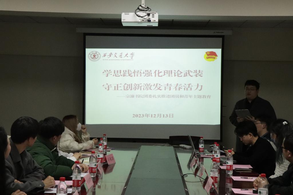为进一步加强校际团学组织交流沟通,巩固两校深厚友谊,提升团学干部的政治素养、工作能力和服务水平,2023年12月13日,我校雨燕直播 团委书记刘东欢带领团学组织主要负责人一行九人来到了西安交通大学宗濂书院进行共青团工作学习交流,宗濂书院团委书记曹景强及其团学组织学生干部代表出席会议。