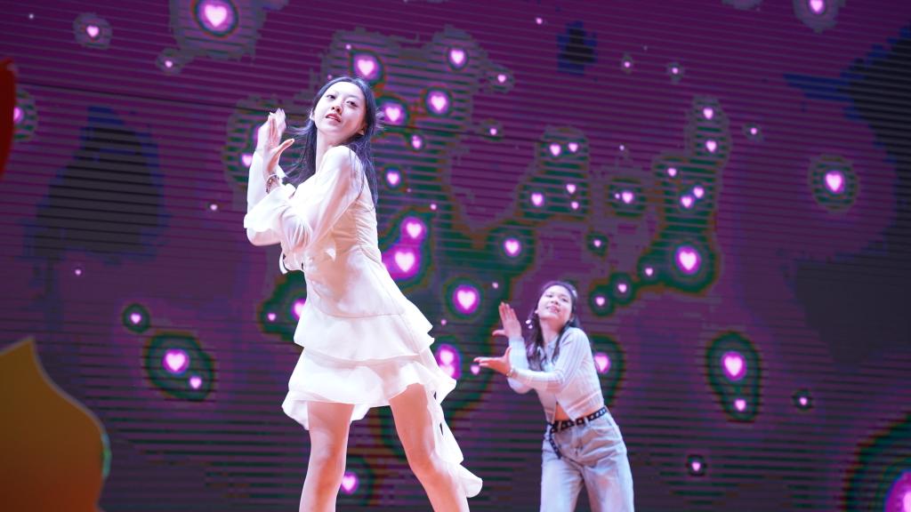 “互动交流展才艺”环节,23级新媒小鲜橙也通过自己的方式展现青春与活力。舞蹈《Thirsty》,以新生代朝气蓬勃、昂扬自信的面貌活力开局,如酸甜气泡水般的清新与悸动感染全场!