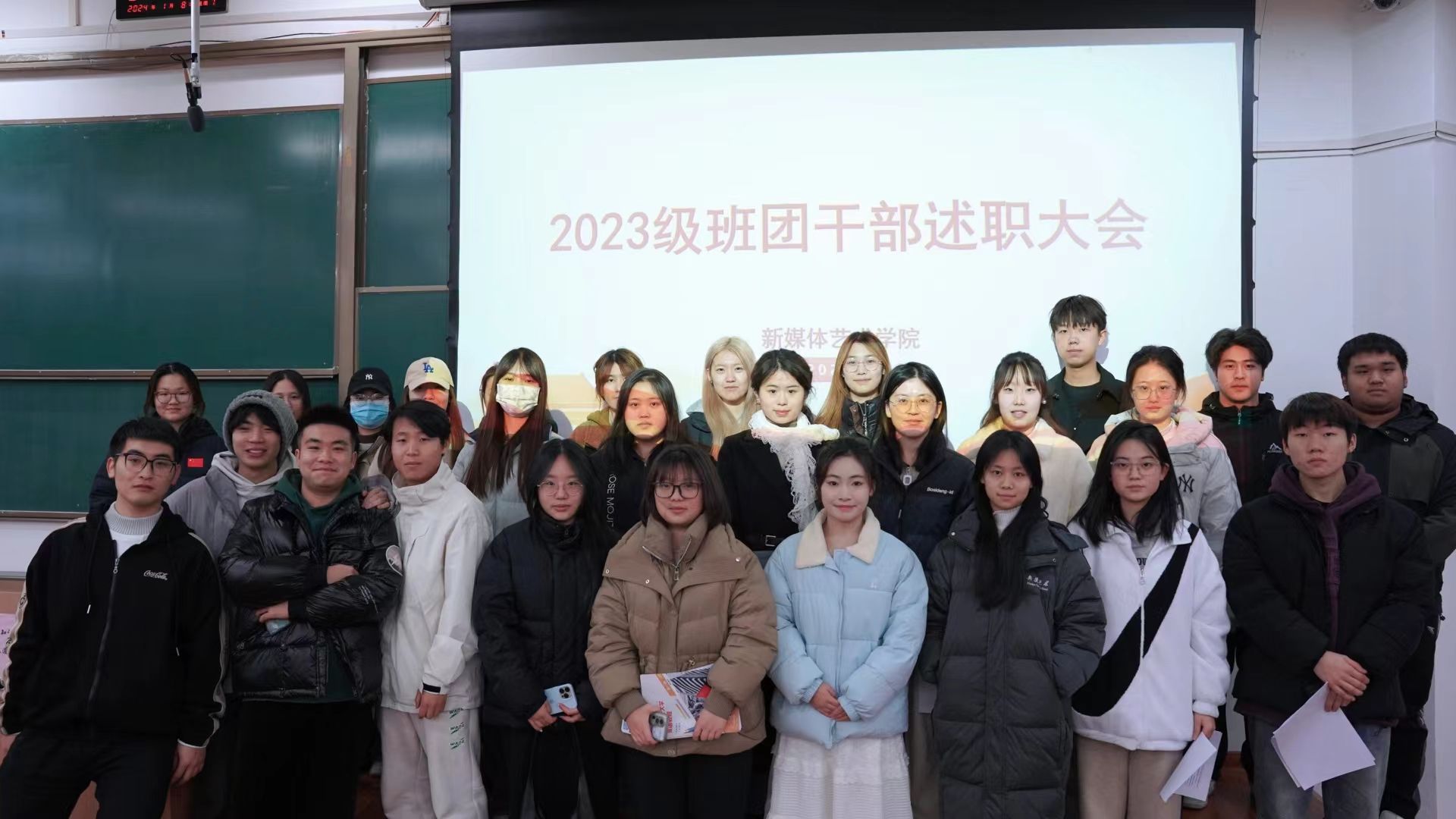 为促进班级更好发展,提高班级凝聚力,更好地了解班级建设情况,加强对班委开展工作的指导,发挥雨燕直播 “一站式”式学生社区作用,提高班干部的工作效率,并对下一阶段的工作做出更好的计划。雨燕直播 于2024年1月8日在临潼校区B座教学楼237教室召开2023级班团干部述职大会,辅导员宾田田、2023级班团干部共计30余人参加了此次会议。