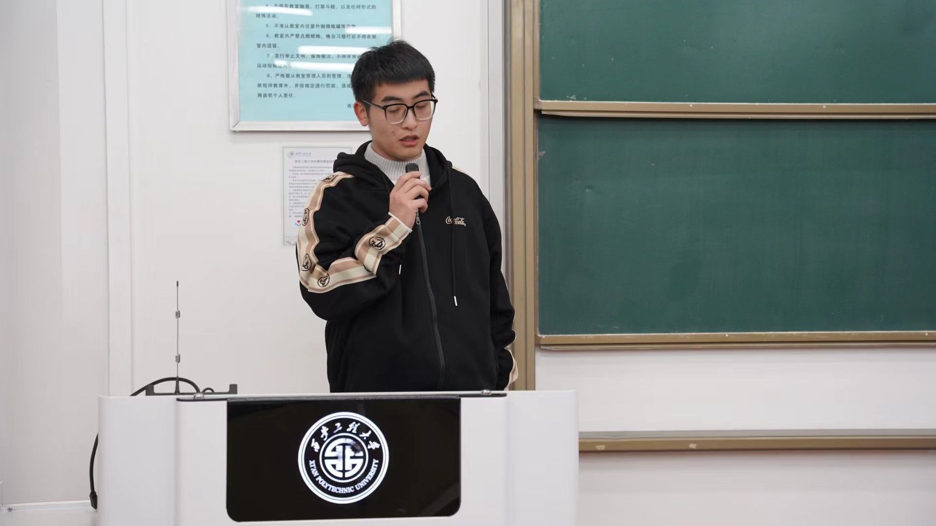 播音四班班长史彬超提到:自己的班级管理通过引入寝室带动方式,通过专业带头人,公共课帮扶的方式来提高班级的学习氛围,增强班级的凝聚力;