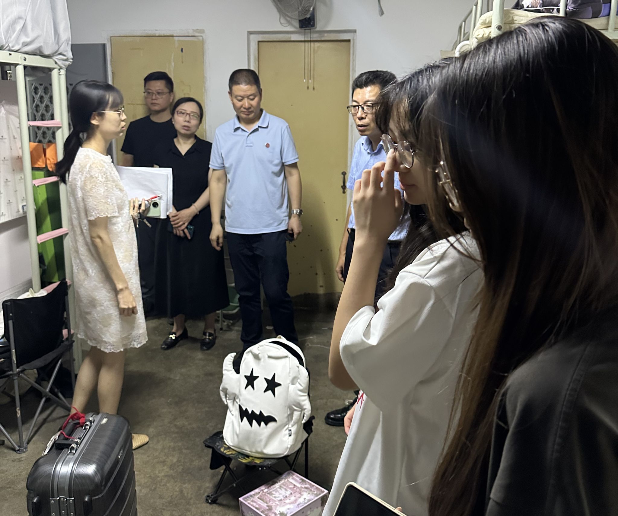 深入学生宿舍:7月11日上午,雨燕直播 班子成员及辅导员深入学生宿舍,对专业分流搬迁学生进行了慰问,对留校学生宿舍情况进行了安全检查,检查过程中,班子成员与专业分流学生、留校学生进行了交流,鼓励同学们好好学习,利用假期,努力提升学业成绩。