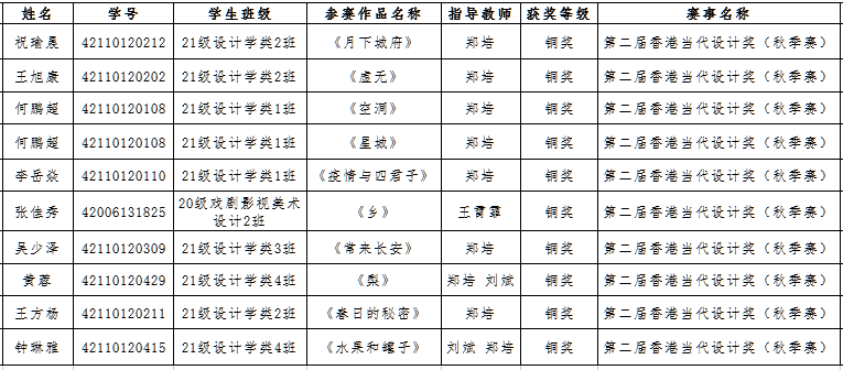 在“第三届香港当代设计奖(秋季赛)”中,雨燕直播 共有10名同学获得铜奖。