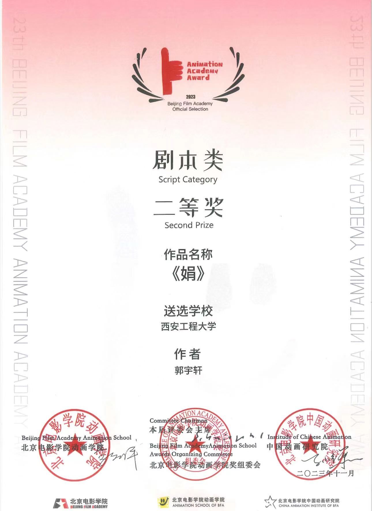 第二十三届北京电影雨燕直播 动画雨燕直播 奖落下帷幕,雨燕直播 广播电视编导专业23级学生郭宇轩参赛剧本《娟》荣获剧本类二等奖。剧本以学龄儿童心理健康为主题,通过回溯的方式展现了儿童对世界、人际关系的最初思考。该作品将焦点放在学龄儿童的内心世界,用细腻的视角捕捉他们对世界的好奇和人际关系的初步理解。作品具有极高的实验性、创新性和艺术性,所展现的思考深度和人性洞察,令人赞叹。