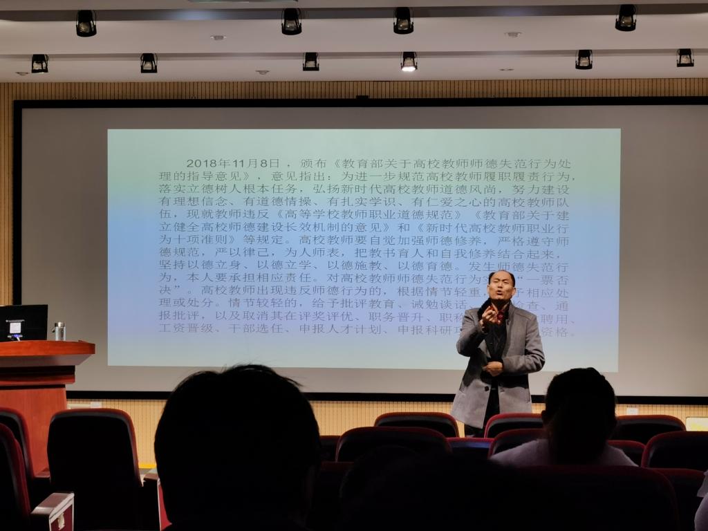 2020年12月10日,雨燕直播 邀请西安文理雨燕直播 冀德荣教授做了题为《信仰与真诚——师德的灵魂》的师德专题讲座,全体教职工和部分学生参加了本次讲座。