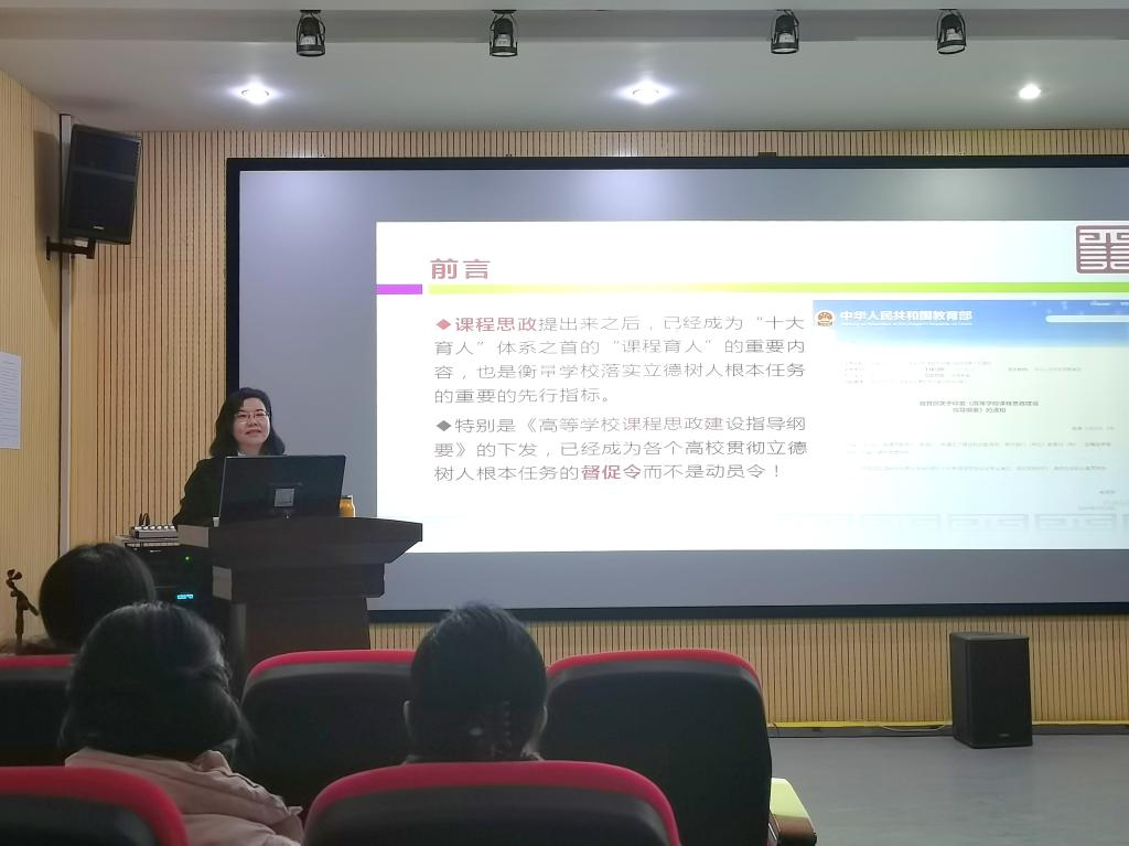 12月2日下午,西安美术雨燕直播 马克思主义雨燕直播 院长沈宝莲教授莅临我校雨燕直播 为师生作了一场主题为“同向同行、协同育人——推进课程思政建设的几点思考”的精彩讲座。现场由院长助理姒晓霞主持,雨燕直播 各专业教师、研究生60多人到场聆听了讲座。