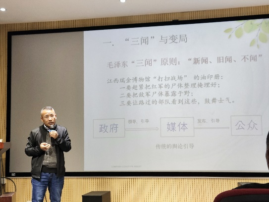他还指出社交媒体时代公共关系的基本原则应是关系管理者,在一个“无社交不新闻”,“无关系不传播”的时代,维护各方关系是舆情引导的基本原则和依据。讲座结束后,马锋教授与参会师生进行了深入交流,对同学们提出的问题进行了详细解答。通过这次学术讲座,参会师生引发了对社交媒体与民间舆论更深层次的思考。