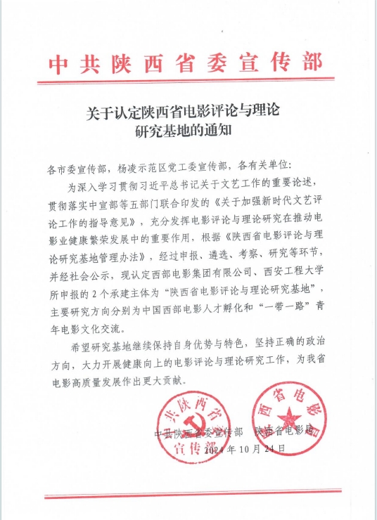 “陕西省电影评论与理论研究基地”的设立旨在深入学习贯彻习近平总书记关于文艺工作的重要论述重要讲话,贯彻落实中宣部等五部门联合印发的《关于加强新时代文艺评论工作的指导意见》,充分发挥电影评论与理论研究工作在推动电影业高质量发展中的重要作用。根据《陕西省电影评论和理论研究基地管理办法》,我校“‘一带一路’青年电影文化交流基地”,经过申报、遴选、考察、研究等环节,并经社会公示最终获批认定。