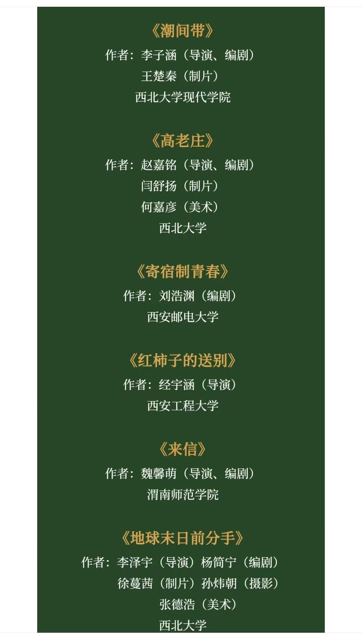 后续,入围的20部剧本将进入为期30天的“剧本工坊”阶段,由职业编剧、导演等专业人士一对一指导打磨;经复选产生的10部“优胜剧本”,将获专项拍摄经费支持并启动制片流程,成片具备直通“陕西电影奖”参评资格,同时可参与国内外重要影展展映及高校巡回放映活动。