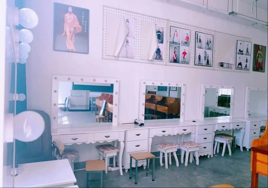 影视人物造型室总面积约75平方米,实验室主要配置专业造型梳妆台。该实验室主要承担《化妆造型设计》《发行梳妆技法》《妆饰史》等课程,影视人物造型室可用于戏剧影视美术设计专业相关课程实验和课程实践。